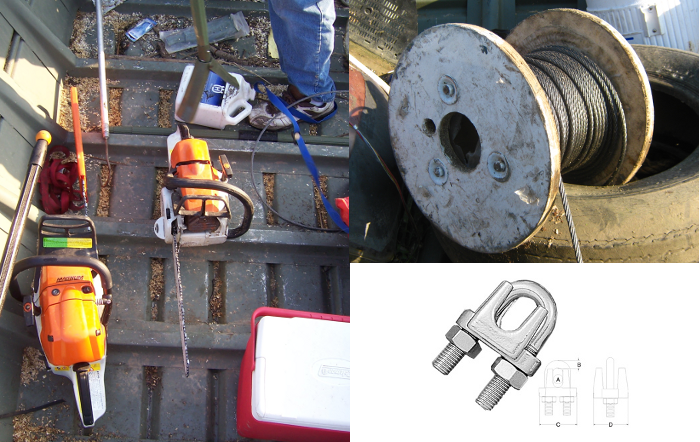 We also use a wide range of tools and equipment such as push pulls, saws, hooks, cable, cable ties,